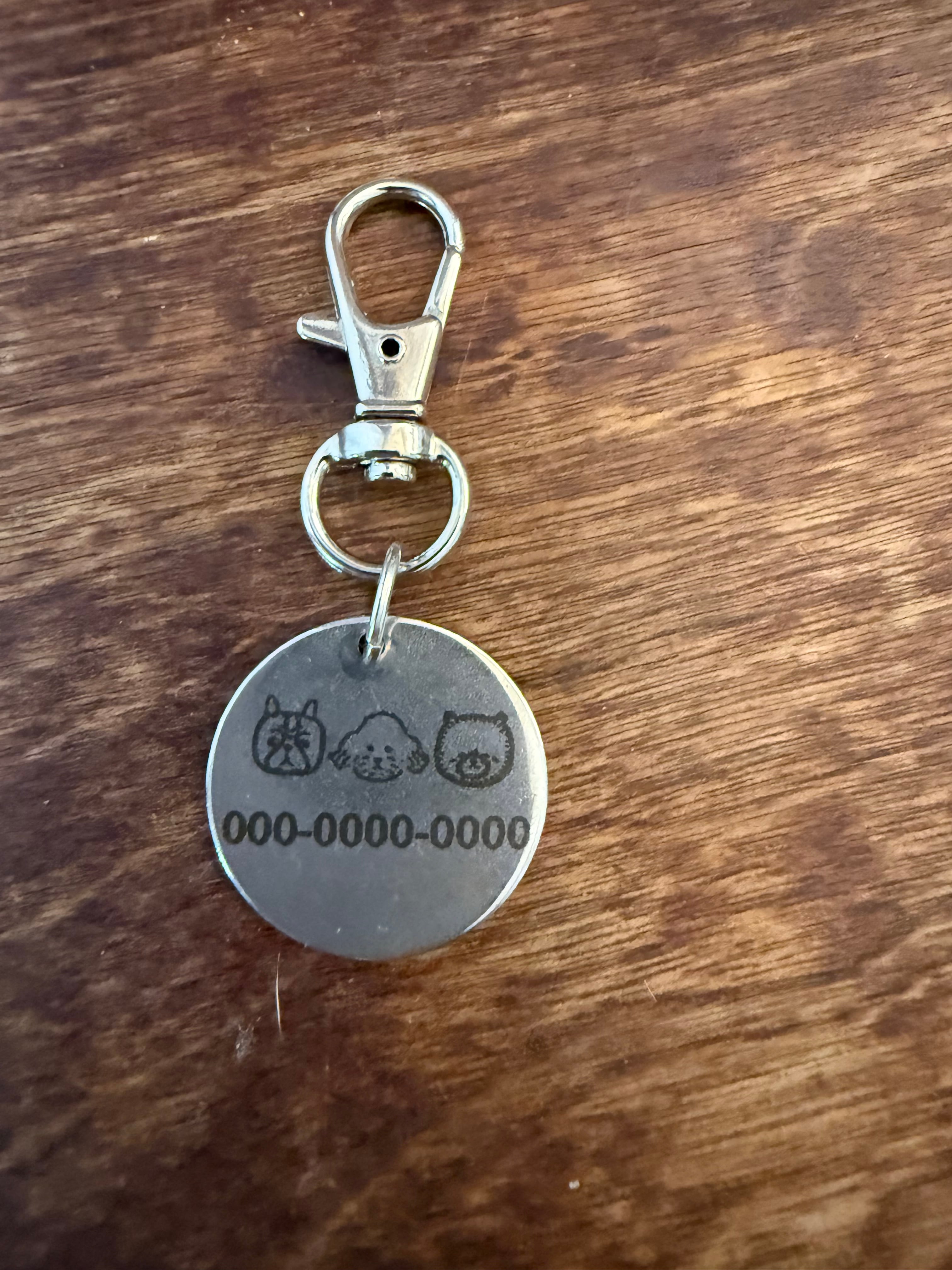 大〜中型犬、ハーネス装着むきのステンレス製の迷子札です